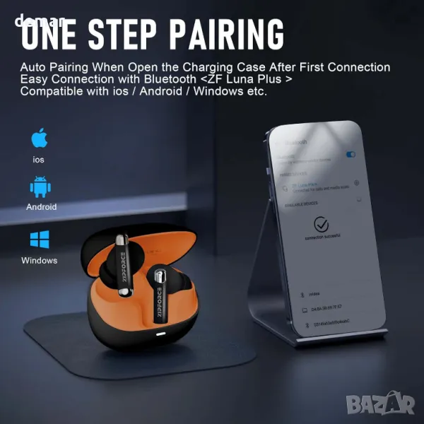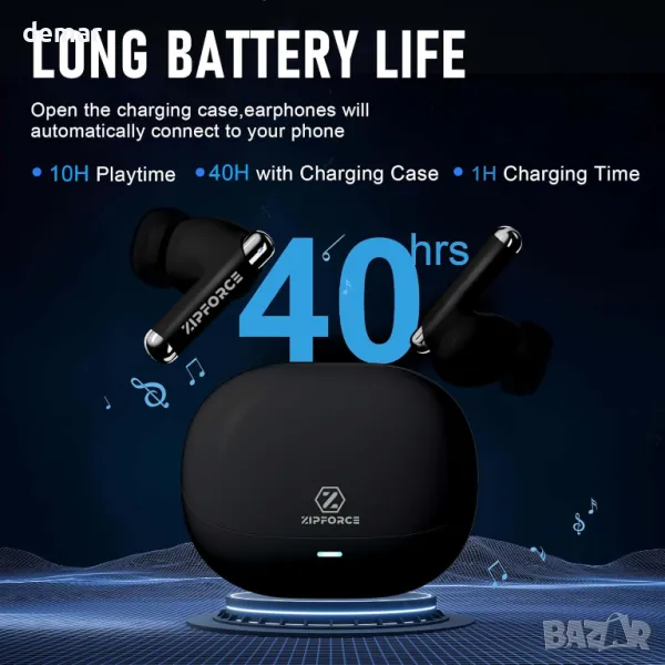 ZIPFORCE безжични слушалки в ухото, Bluetooth 5.3, Touch Control, IPX6, черни