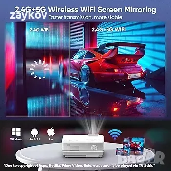 Безжичен 5G WiFi за по-бързо отразяване на екрана: С подобрена 2.4G + 5G двулентова WiFi свързаност, този проектор е по-бърз и много по-стабилен, съвместим с вашия iOS/Android/Windows и осигурява по-плавно и без забавяне онлайн видео и игрово изживяване. Без ограниченията на допълнителен адаптер можете да се наслаждавате на любимите си филми и игри по всяко време и навсякъде.
