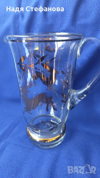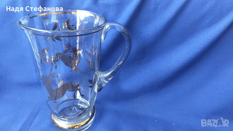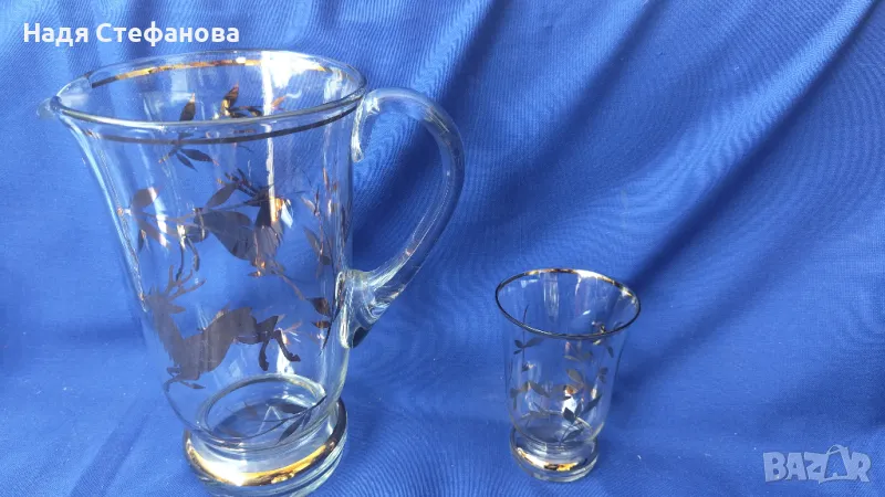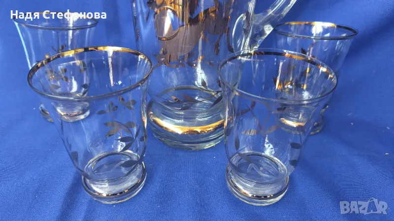 Ретро комплект за безалкохолно, вода, вино, кана и 4 чаши, златни шарки, кантове → Обява 47333678