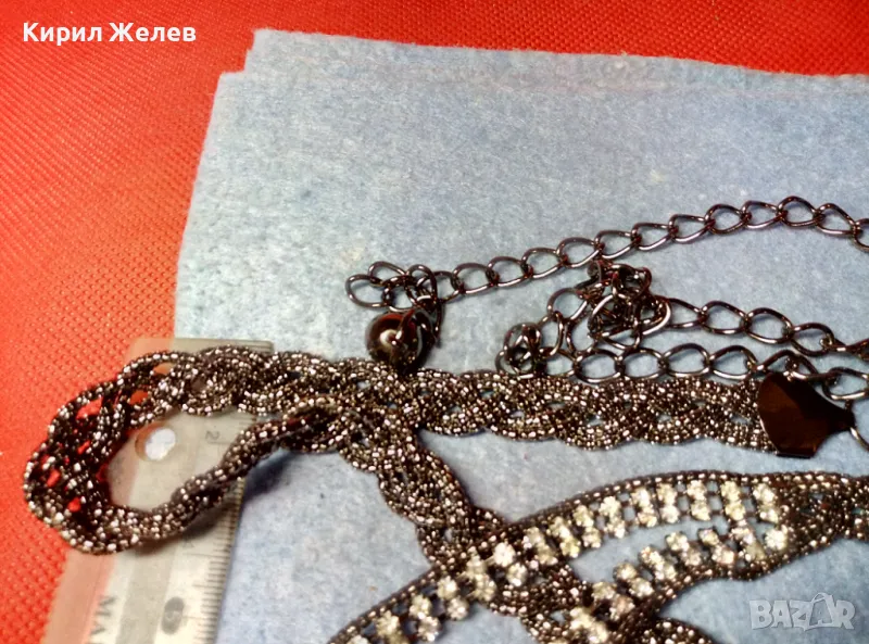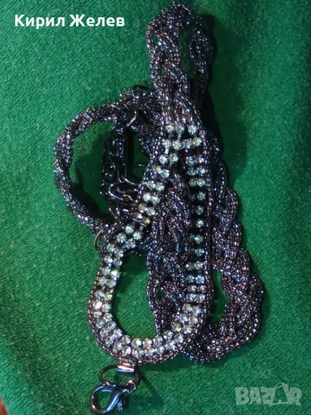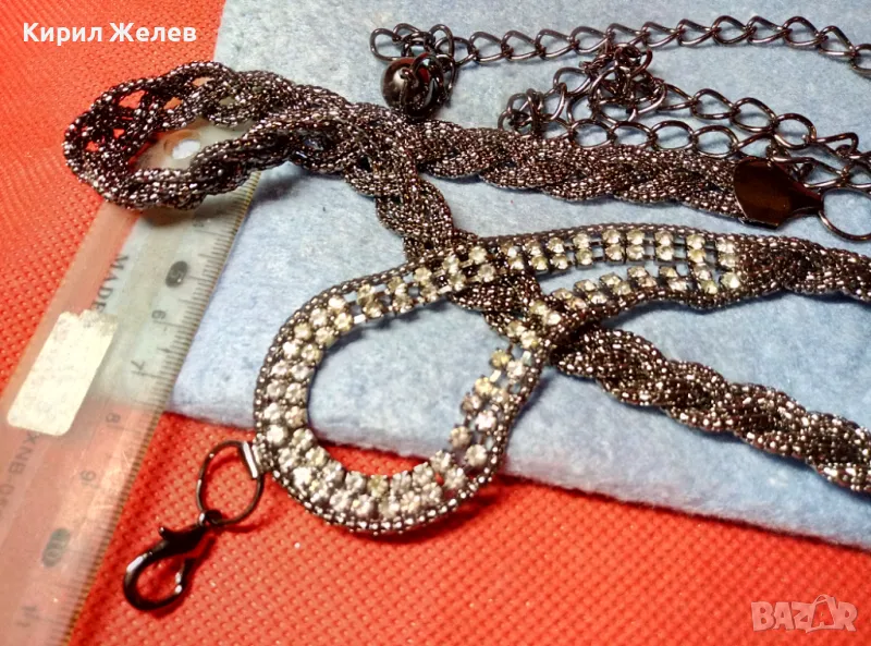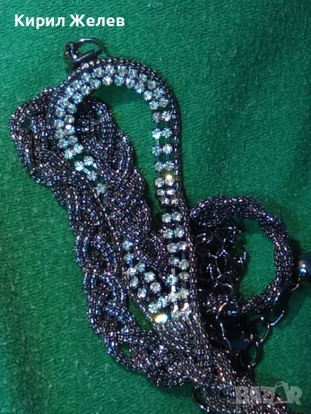 ШАРМАНТНО СРЕБРИСТО ФЕШЪН АРТ ДАМСКО КОЛАНЧЕ с ИСКРЯЩИ КРИСТАЛИ 47369