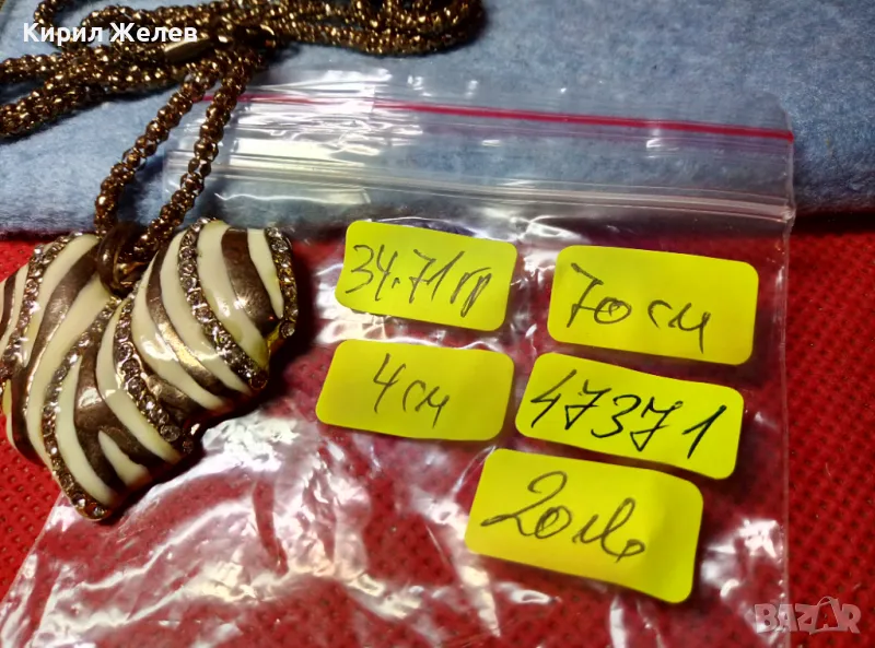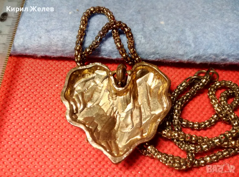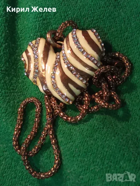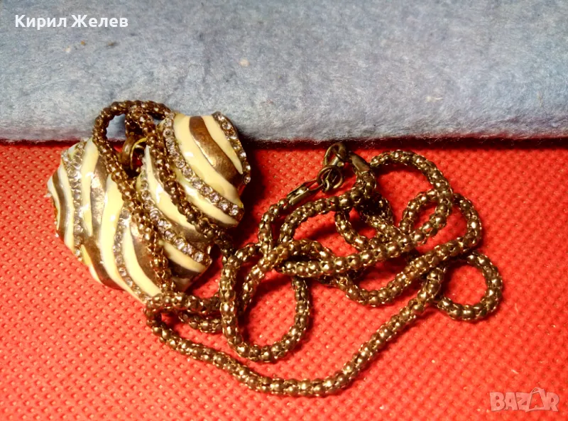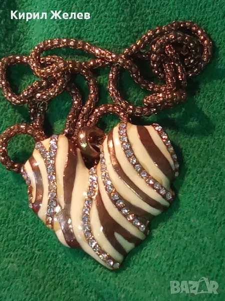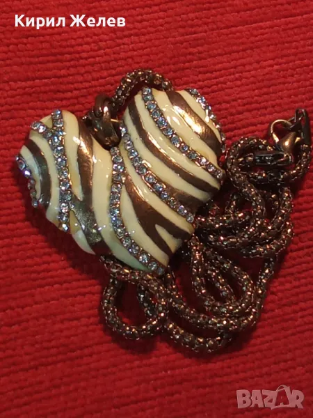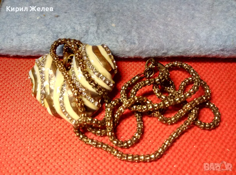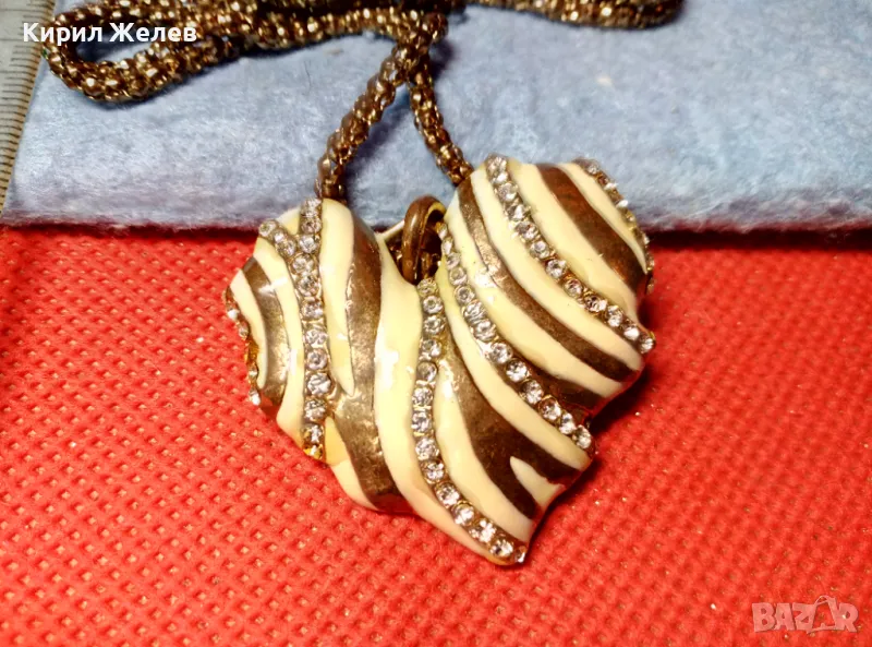 ЗЛАТИСТО със СЪРЦЕВИДЕН ЕМАЙЛИРАН МЕДАЛЬОН ВИНТИДЖ КОЛИЕ с БЛЕСТЯЩИ КРИСТАЛИ 47371