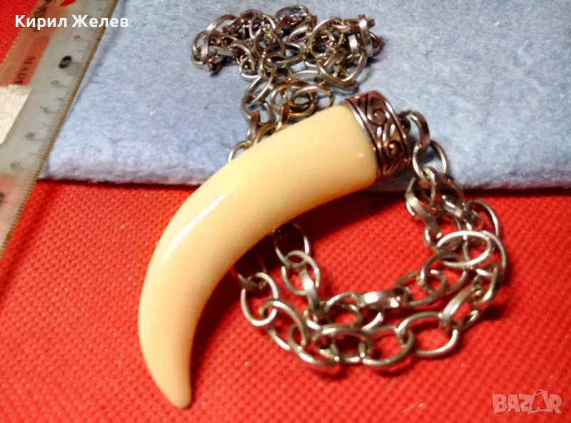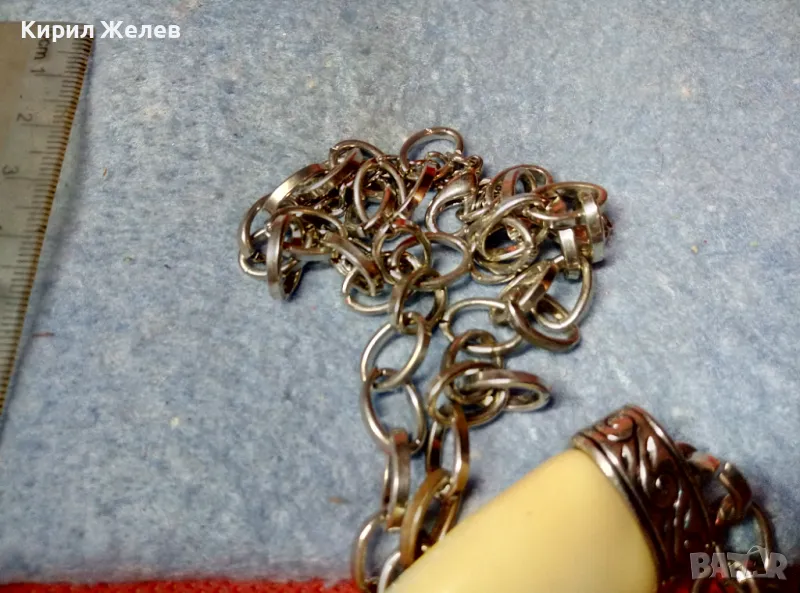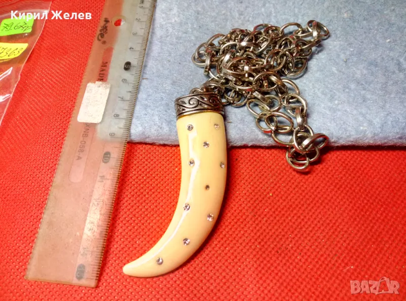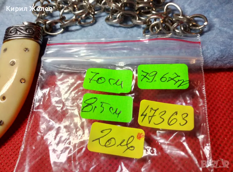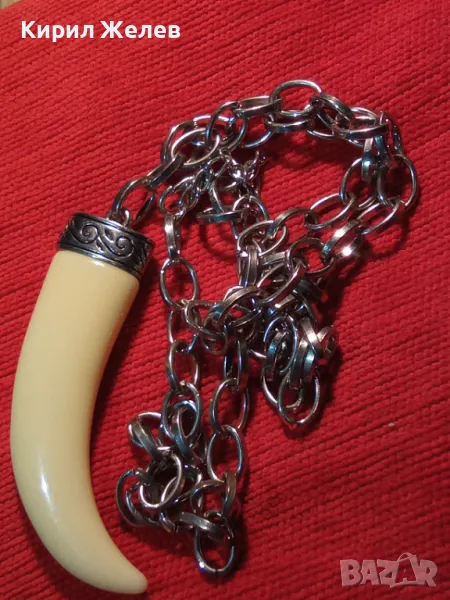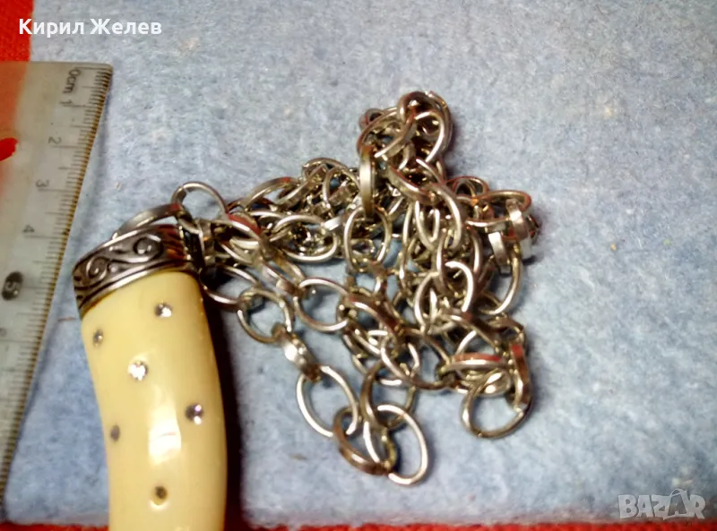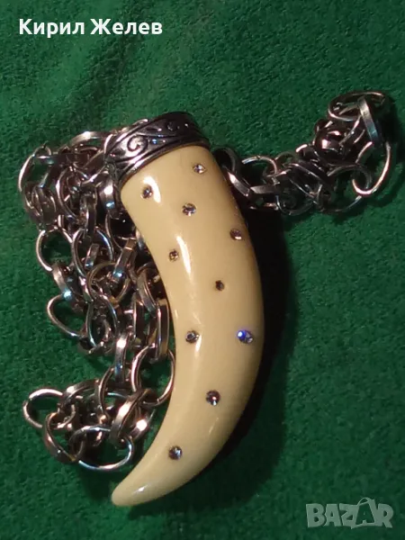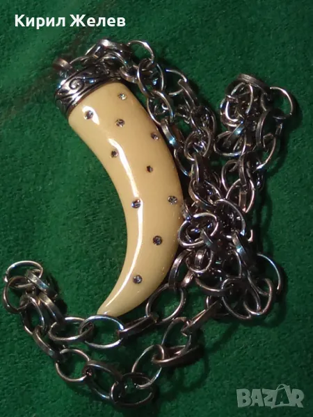 СРЕБРИСТ СТОМАНЕН ВИНТИДЖ ЛАНЕЦ ВЕРИЖКА КОЛИЕ с АРТ ВИСУЛКА във ФОРМА на МЕЧИ НОКЪТ с КРИСТАЛИ 47363