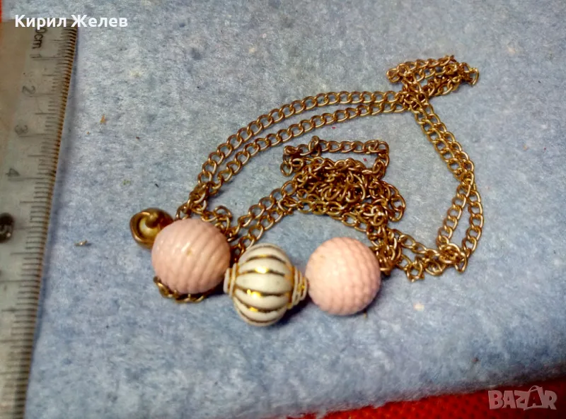 КРАСИВО ФИНО ПОЗЛАТЕНО АР НУВО СТИЛ КОЛИЕ БЛАГОРОДНА СТОМАНА с МЕДАЛЬОН 47373