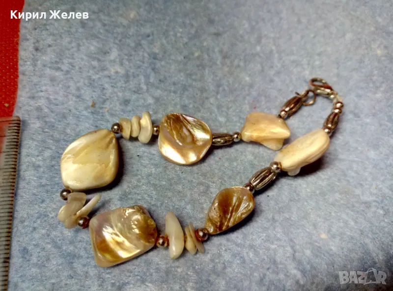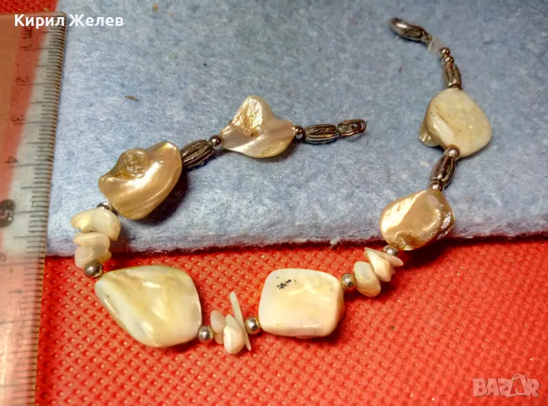 ГРЪНЧ АРТ СТИЛ СРЕБРИСТА СЕДЕФЕНА ГРИВНА ХЕНД МЕЙД УКРАШЕНИЕ КРАЛСКИ СЕДЕФ 47414