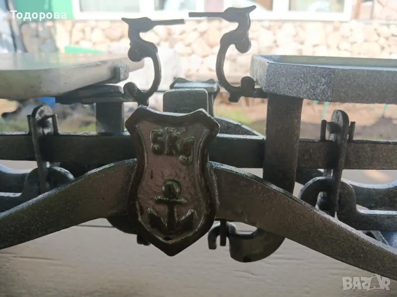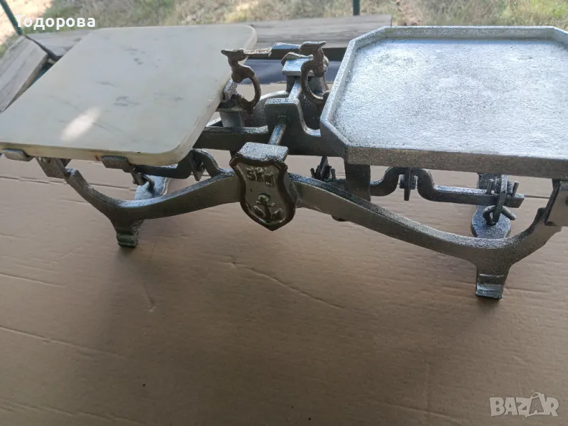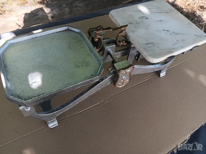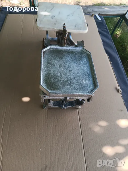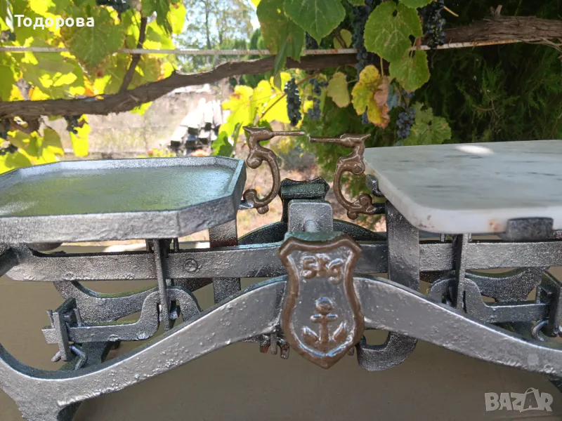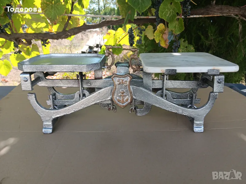 Старинна везна.Функционираща отлично.Красиви елементи.Едната страна е чугунена,другата от мрамор.Подходяща както за работа,така и за интериор.