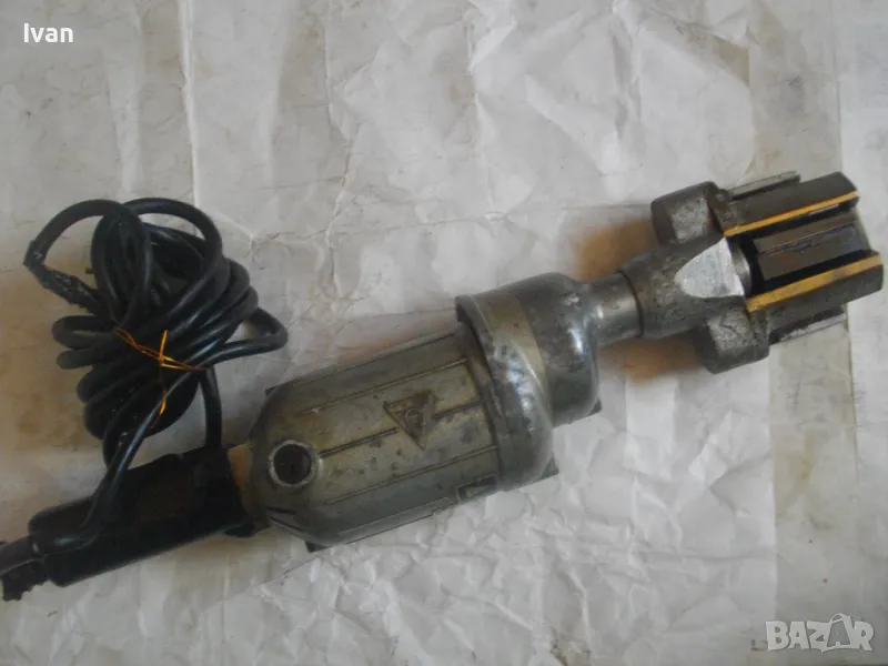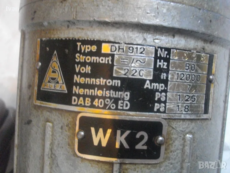 ОПИСАНИЕ на FLEX голяма електрическа дърводелска фреза професионална немска с прав голям фрезер - цена 599 лв. Машината е фреза за дърво - профилно фрезоване и прорязване на канали. Голяма, масивна, изцяло стоманена, професионална дърводелска права профилна фреза, с поставен голям прав профилен фрезер за канали, модел профи на Флекс. Машината е немско, старо, висококачествено производство - професионално промишлено. Марка и модел на машината - FLEX WK2 Type DH 912. Машината е със запазен външен вид и техн.състояние - ОТЛИЧНО. Работи много добре - няма никакво искрене на ниво четки/ротор/статор. Няма смущаващи вътр. шумове като виене, свистене, тракане. Четки - външни.Изцяло стоманен масивен корпус, редукторна стоманена кутия, стоманена предна част работна. Дръжка - твърда бакелитова пластмаса. Цялостна дължина на машината - 550 мм. Кабела е трижилен, внаждан за щепсел.Поставен фрезер - много голям, тип прав фрезер за канали - профили. Дължина фрезера - 70 мм, диаметър на фрезера - ф 40 мм. 3 канала. Острие на фрезера - твърдосплавни частици, много добре заточен. Глава на машината - алумин изцяло. Метален заден пусков ключ превключвател - Ein - Aus. Характеристики на машината :