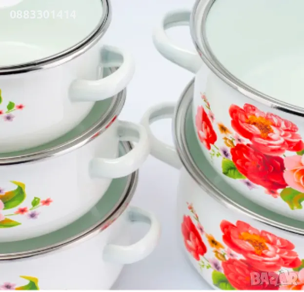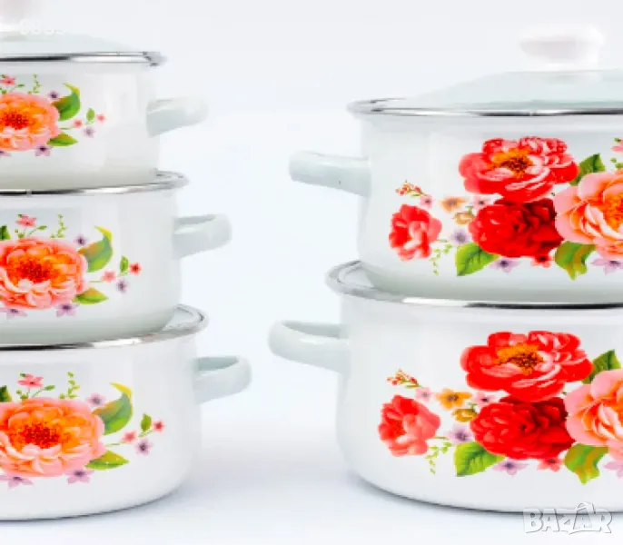 Дизайн: Тенджерите са украсени с красиви флорални мотиви, които придават стил и елегантност на вашата кухня.