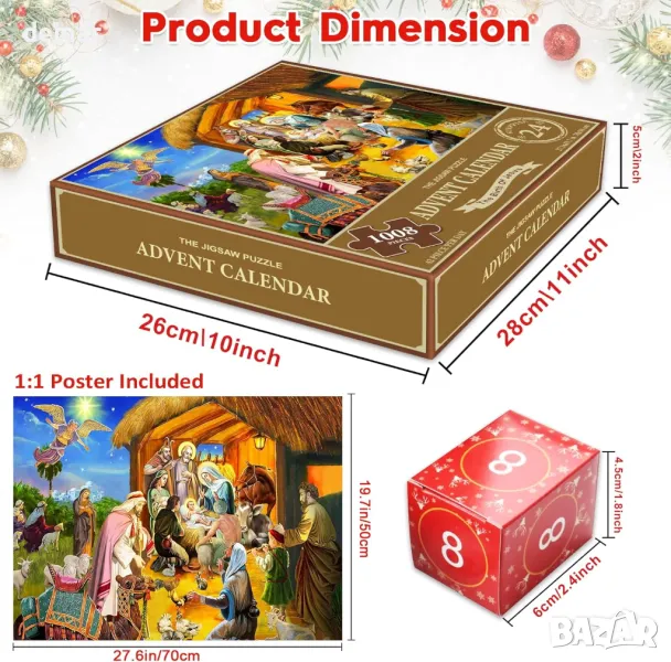 Изживейте същността на Коледа с пъзел от 1008 части Advent Calendar, включващ сцената на Рождеството, разделена на 24 номерирани секции, за да се наслаждавате ежедневно от 1 до 24 декември. Изработен от екологично чисти материали с прецизно изрязани, матирани части за безпроблемно сглобяване без отблясъци, той е идеален за семейно обвързване и създаване на трайни ваканционни спомени. Този прочувствен пъзел е обмислен подарък, насърчаващ размисъл и заедност по време на празничния сезон.