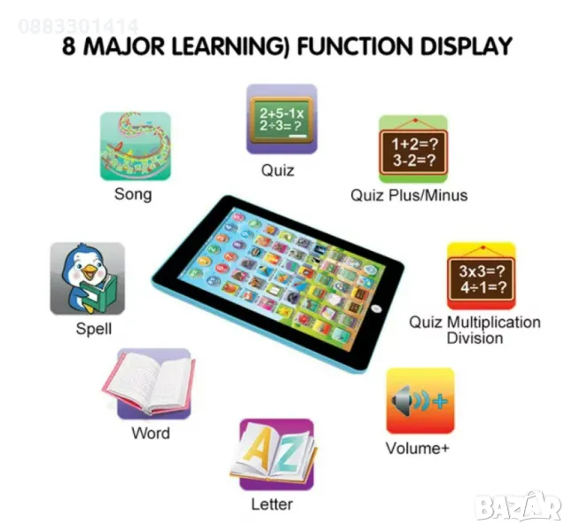 Този продукт е не само за забавление, но също така може да помогне на децата ви да научат английски, правопис, съвпадение на думи със снимки и математика.