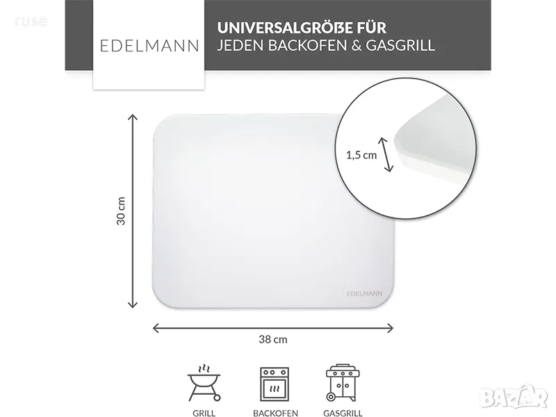 Издържа на температури до 800°C и е идеален за газови грилове или фурни.