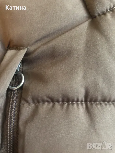 Топло зимно яке в кафяв цвят.Възможност за коригиране в талията.Два странични джоба с цип.Обличано няколко пъти.Като ново.Размер на етикета S.