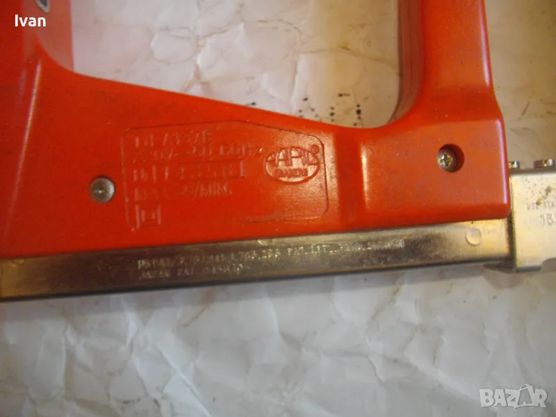 ОПИСАНИЕ на оранжев профи ел. такер шведски RAPIDл Професионален за скоби електрически такер на Рапид - шведско производство, японски патент. Предназначение в дърводелството и за прикачване на кабел към стена и повърхност.