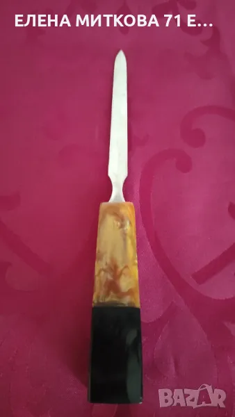 Стар нож за писма с дръжка от каталин, снимка 1 - Други ценни предмети - 47342147 Стар нож за писма с дръжка от каталин, снимка 2 - Други ценни предмети - 47342147 1/2