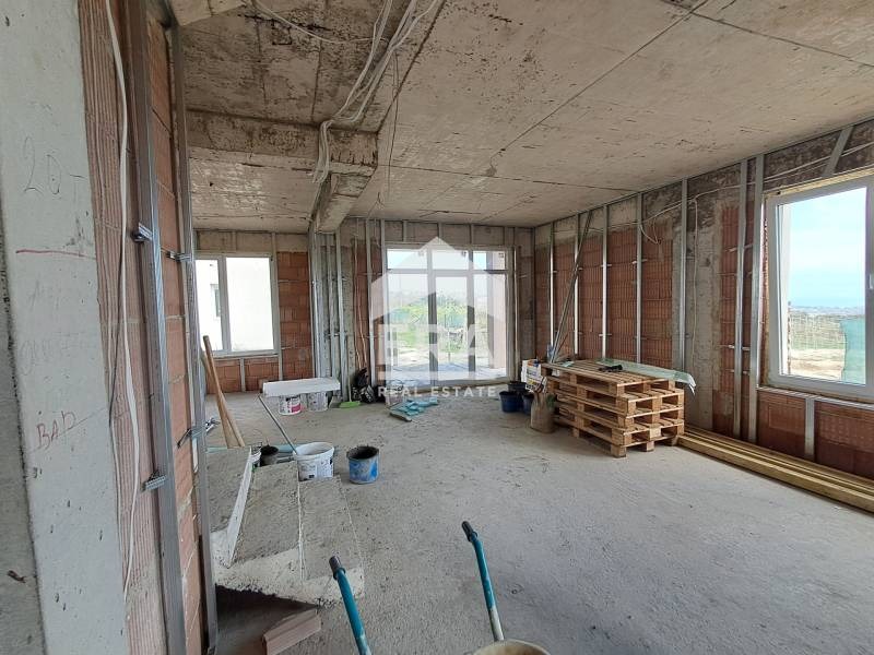 Първият етаж със застроена площ 95 кв.м се състои от просторна дневна с кухненски бокс и трапезария (56,5 кв.м), с излаз на широка веранда (14 кв.м), коридор (6,35 кв.м), килер (5,4 кв.м), складово помещение и тоалетна. Вътрешно стълбище (6,65 кв.м) води към втория етаж, който включва четири спални (14,65 кв.м със собствена баня с тоалетна 3,6 кв.м; 13,9 кв.м, 11,75 кв.м и 12,4 кв.м), два балкона (11 кв.м и 6,4 кв.м), коридор (6,65 кв.м), втора баня с тоалетна (3 кв.м) и перално помещение (2,4 кв.м). Изложението е юг/изток/запад. Открива се морска панорама.