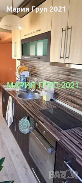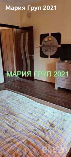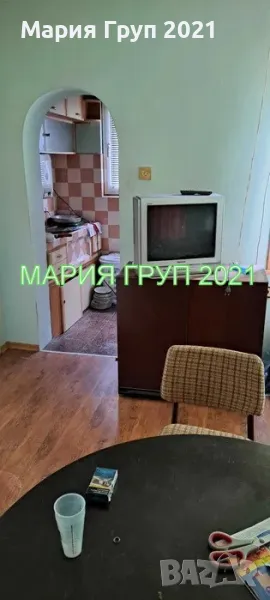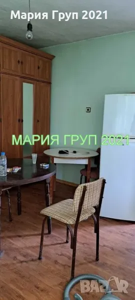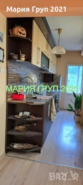 Първи етаж: антре, баня с тоалетна, две стаи, от които едната с кухненски бокс - общо 56 кв.м.