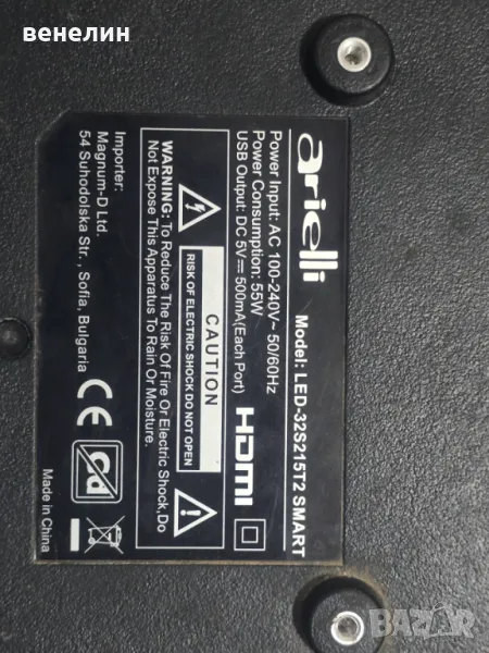 Платките са свалени от телевизор arielli 32S215T2 със счупена матрица.