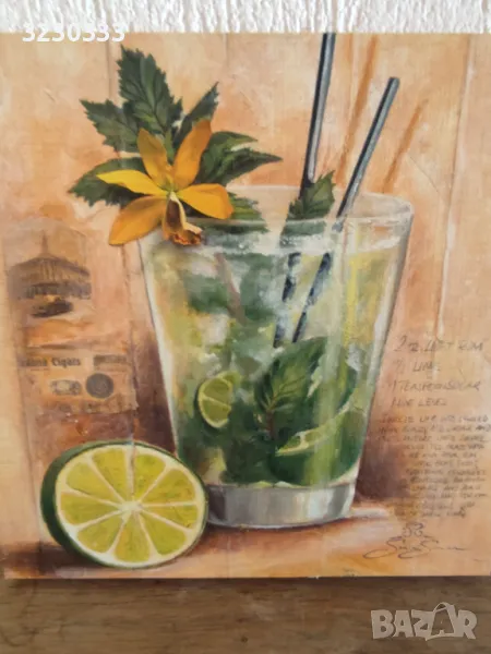Картини - принт за декорация на кухня, барбекю и други - за окачване на стена, плодови коктейли с рецепти, печат на гърба - дизайнер Sonia Svenson, Германия. Размери ,- 20 х 20 см. Изпращам по Еконт с 10% отстъпка от транспортната такса.