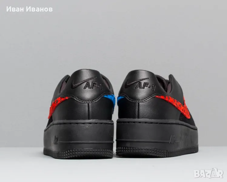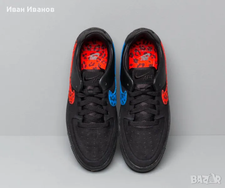 маратонки Nike Air Force One Sage са облечени в черна велурена конструкция с кожени акценти и контрастен червен леопард Swoosh от външната страна, както и син такъв от средната страна. Черните леопарди вече са налични. - Горна част от велур и кожа - Въздушно омекотяване - Гумена подметка