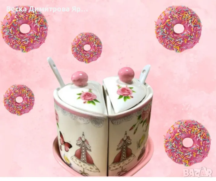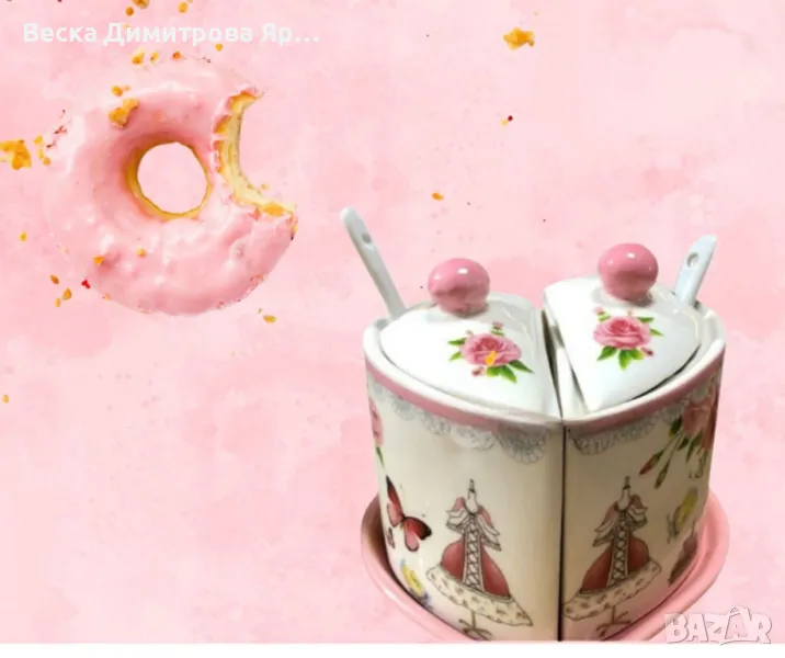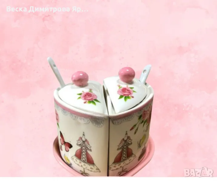 Порцеланова захарница,форма на сърце → Обява 47347296