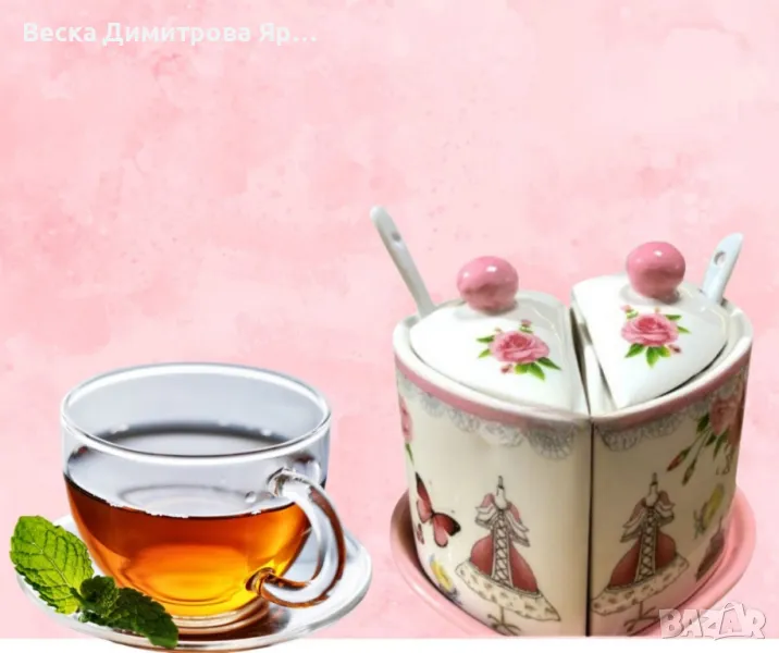 Тип продукт: Порцеланов сервиз;Порцелановата захарница с красив дизайн във формата на сърце е перфектно допълнение към всяка кухня. Изработена с внимание към детайла, тя идва в комплект с две лъжички и чиния, които също следват елегантната форма на сърце. Този сет съчетава практичност и стил, като добавя романтичен акцент към вашите сутрешни ритуали или празнични моменти.