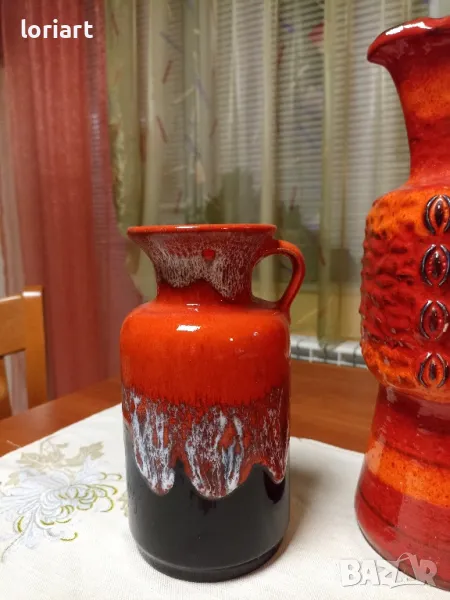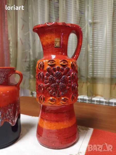 Красиви, червени, керамични, западногермански вази, произведени 70 те години на миналия век.
