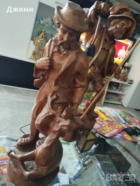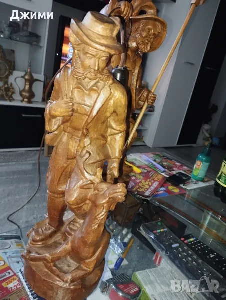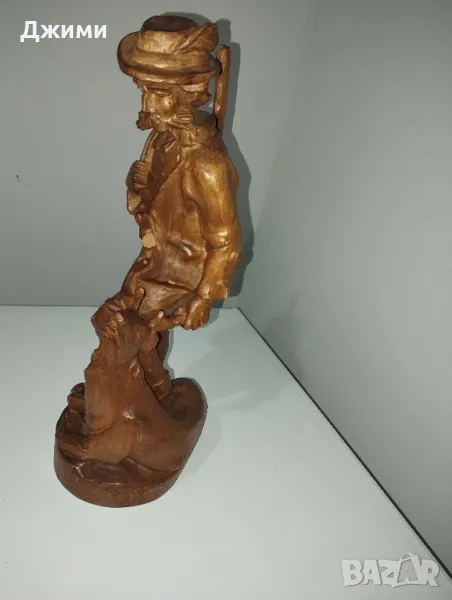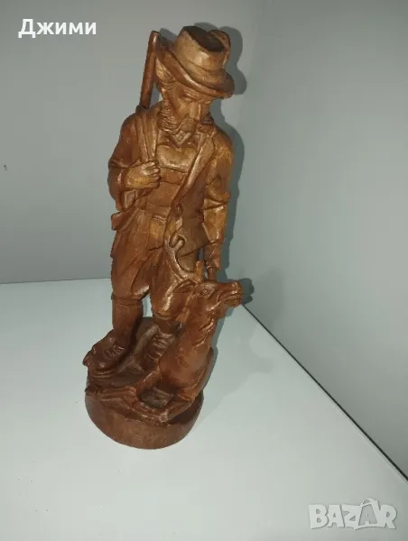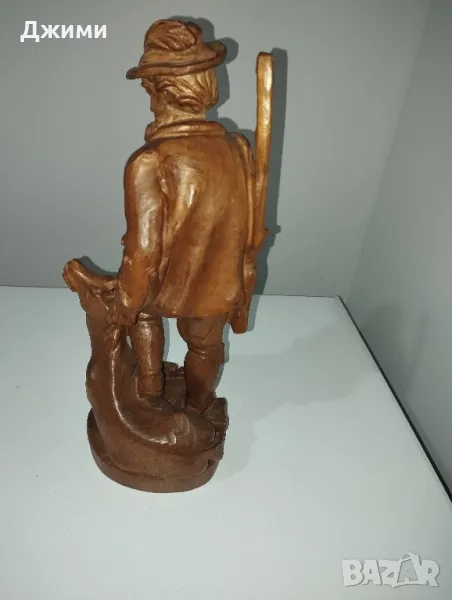 перфектна статуя на ловец застрелял елен от цяло парче дърва много релефно цената е крайна