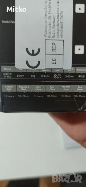 Мода: 6 режима - Винаги включен/Бързо мигане/Бавно мигане/Ритмично мигане/Дишащо мигане/Енергоспестяващо мигане