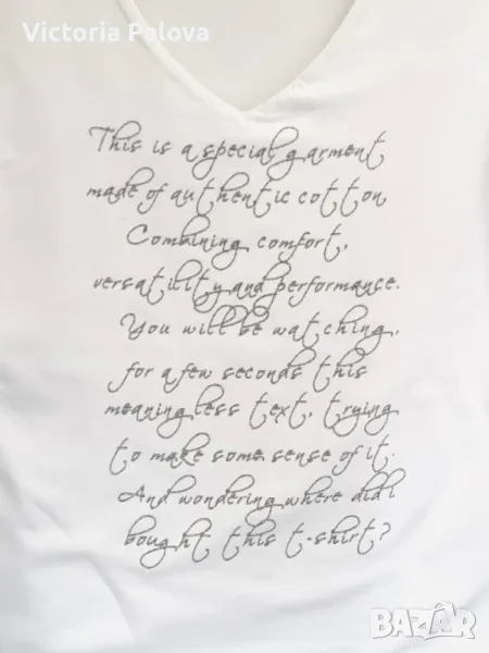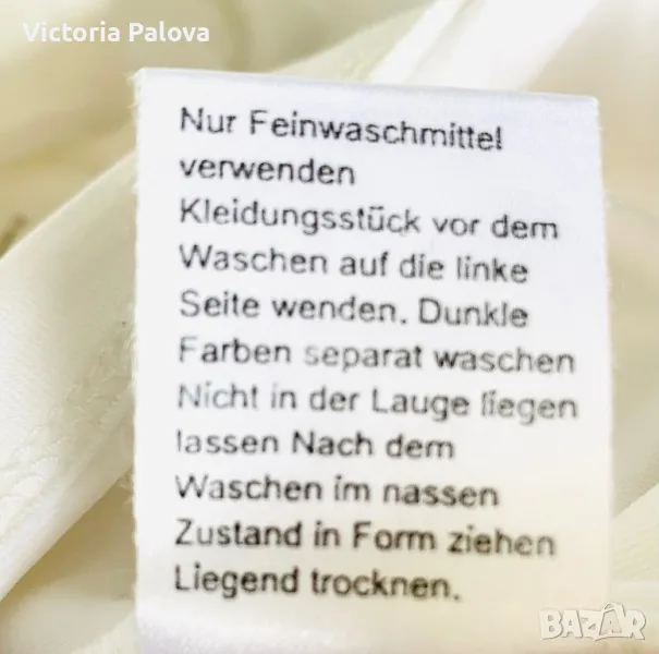 Прекрасна качествена блуза цвят ванилия ( екрю), предната част е двойна, красиво деколте , плътна материя, която няма да се деформира. Рамо - 40 см, ГО - 44см, дължина - 58см, ръкав - 48см.
