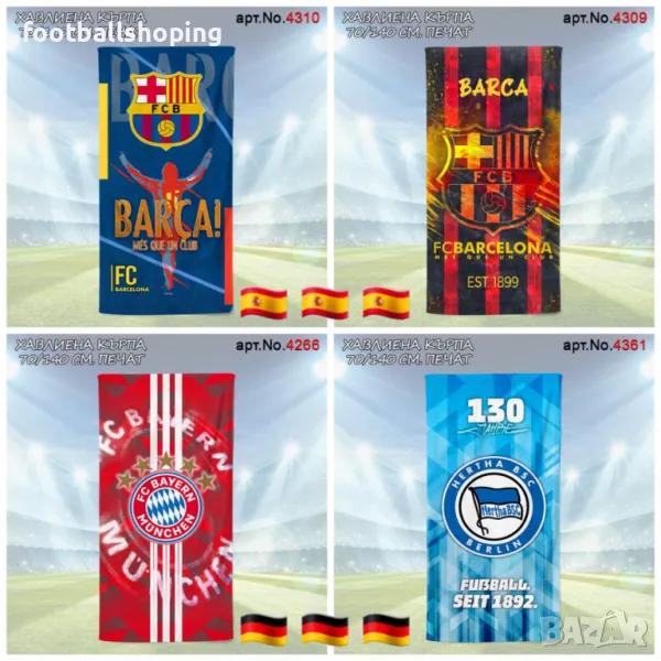 Футболни Памучни Хавлии печат 140/70см 30 модела