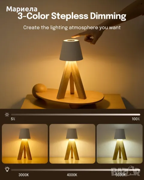 Безжична лампа Lalavon с опростен дизайн, висококачествен PS абажур (IP54 водоустойчив) и дървена основа за статив (не само екологична, но и стабилна). Перфектна за създаване на уютна атмосфера, съсредоточено четене или стилно допълнение към декора на вашия дом, за да подобрите качеството си на живот.