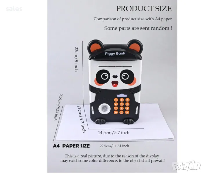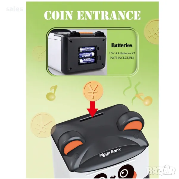Детската касичка панда има и музикален съпровод което е допълнително удоволствие за малчуганите, има опция да говори на Английски и на Китайски език.