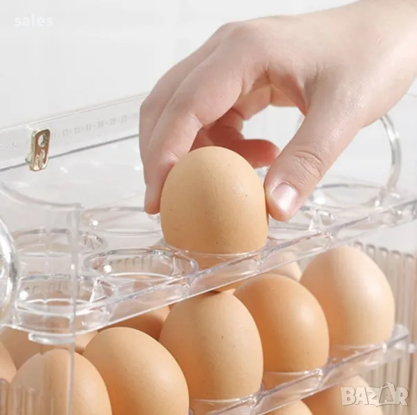 ✅ Двата горни слоя могат да се сгъват нагоре, осигурявайки лесен достъп до яйцата от дъното.