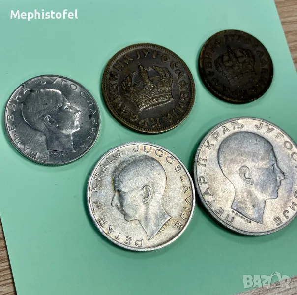 Лот от 5 бр. монети 1938 г, Кралство Югославия - сребърни монети и др.
