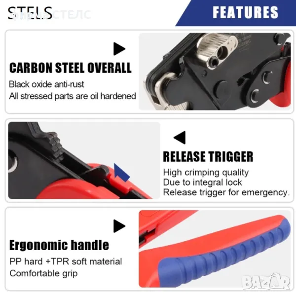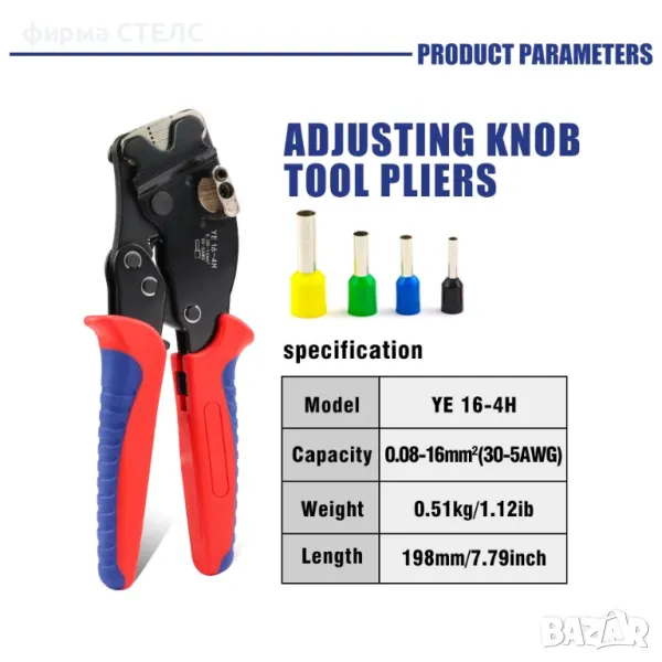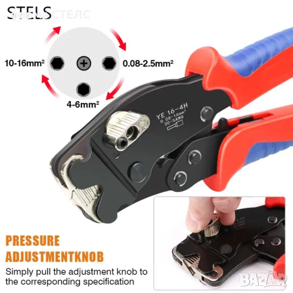 Клещи за кримпване на кабелни накрайници STELS YE 16-4H