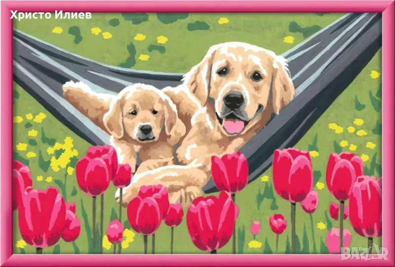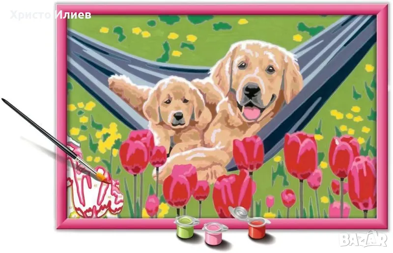 Нов комплект за рисуване по номера Ravensburger CreArt Кучета с цветя