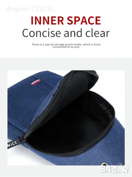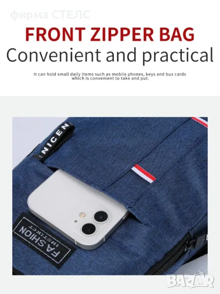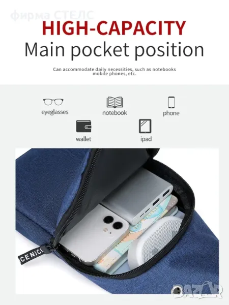 Чанта през рамо STELS, През гръб или гърди, Водоустойчива, Джоб против кражба, Жак за слушалки, Устойчива на износване, Унисекс, 18x5x31см