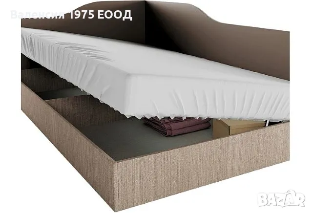 Легло с повдигащ пружинен механизъм за еднолицев матрак 120/190 см( матракът стъпва върху касата), делител в подматрачното пространство, който от една страна го разделя на две по-удобни части за съхранение, а от друга, заздравява значително цялостната конструкция на леглото.