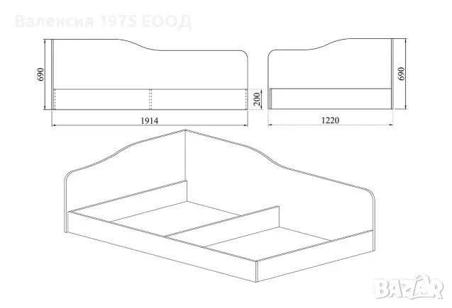 Размери: 122/ 192/ Н71 см( височина на касата 20 см);