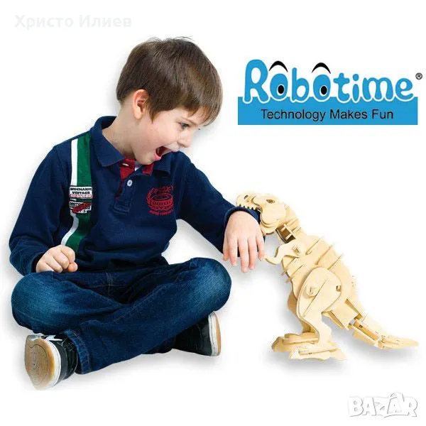 Сега от Robo Time са създали триизмерен Тиранозавър рекс, който се сглобява от 85 части, а в него има механизъм за движение и звуков сензор, с който се управлява посоката, в която да върви вашия робот (с пляскане).