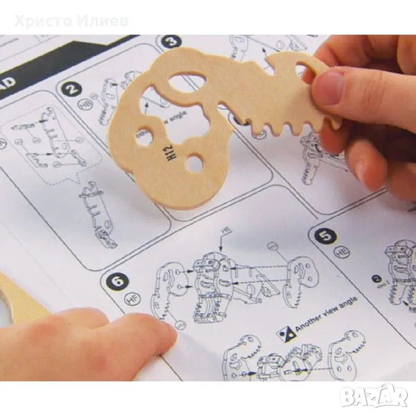 Дървен 3D пъзел моторизиран динозавър T‑Rex Ходещ Тиранозавър рекс със звуков контрол