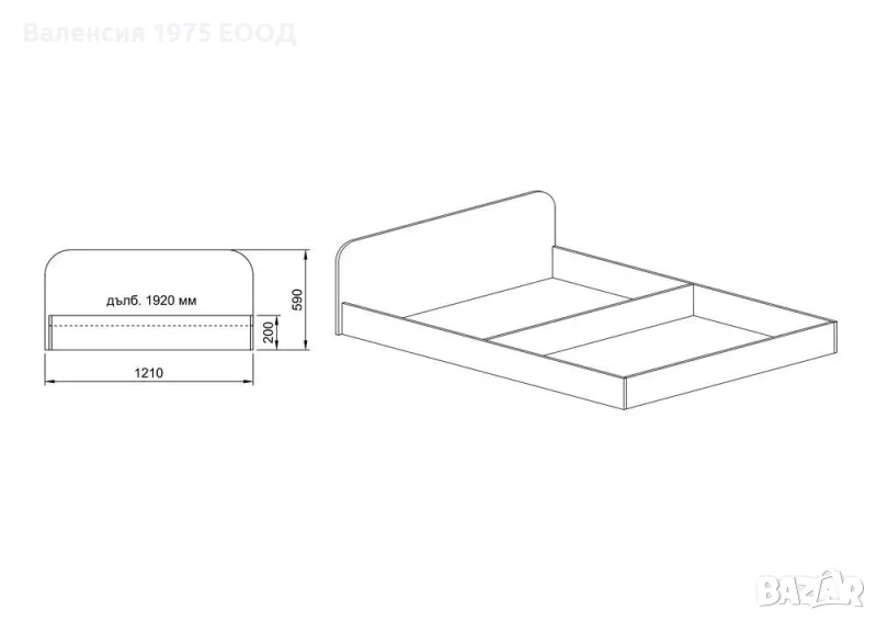 Размери: 121/ 192/ Н59 см( височина на касата 20 см);