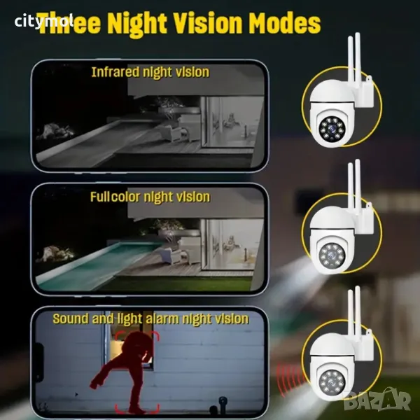 Камерата изпраща нотификации при засичане на движение и звук, директно на смартфона, чрез приложението с което работи. Автоматичен нощен режим и ЦВЕТНА нощна картина. Наблюдение, през мобилни устройства: Android, iOS чрез приложението iCam 365.