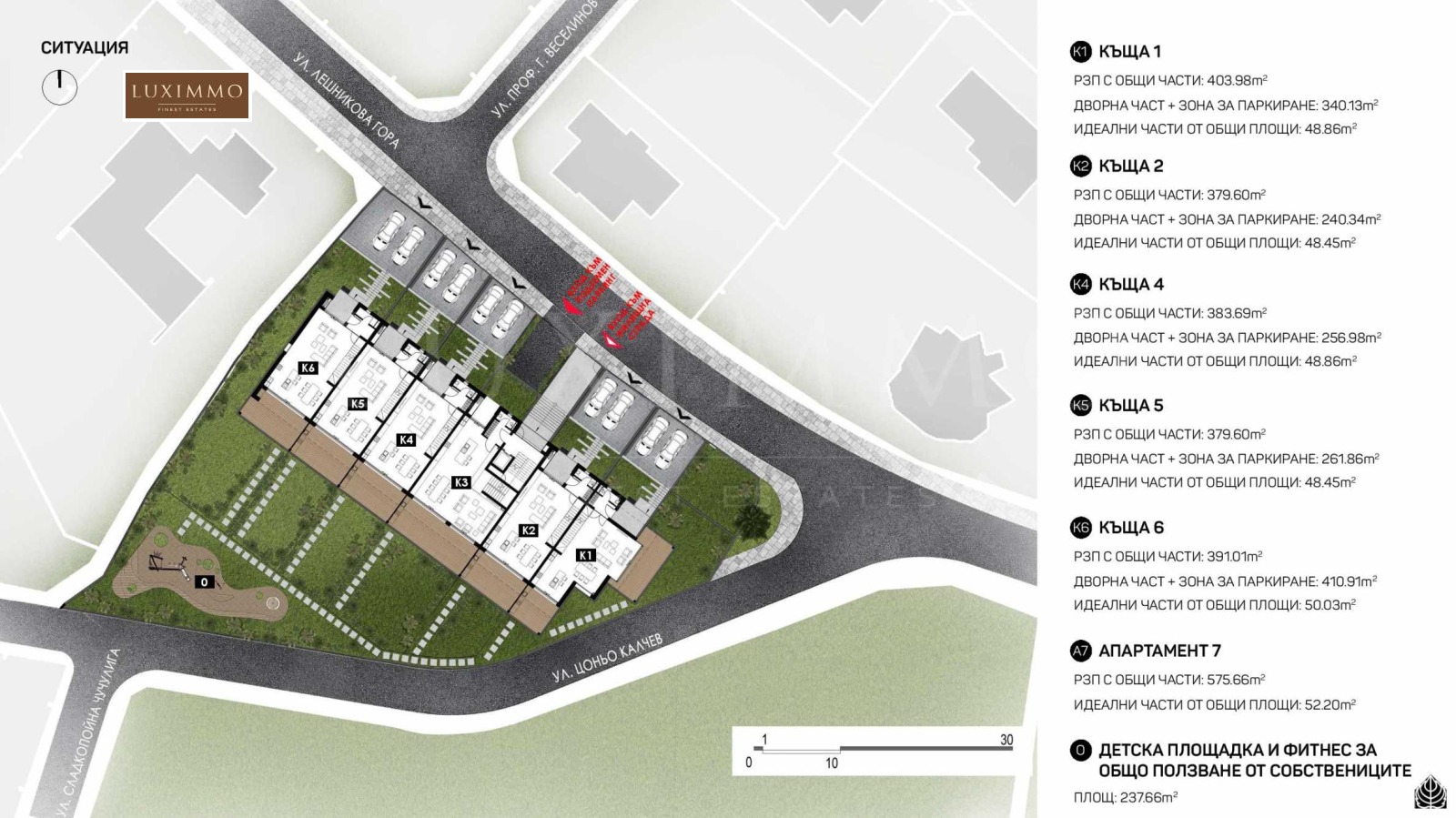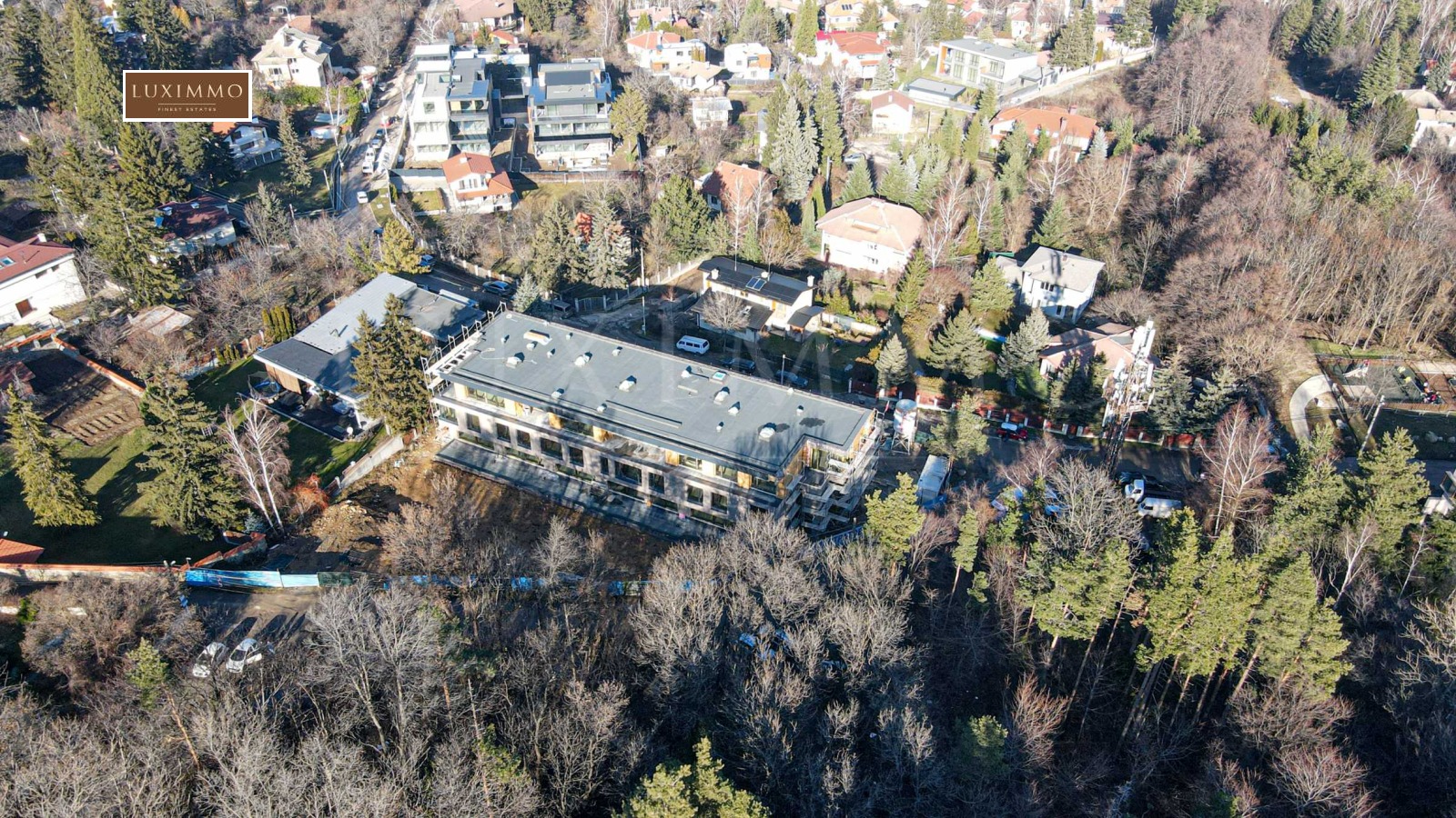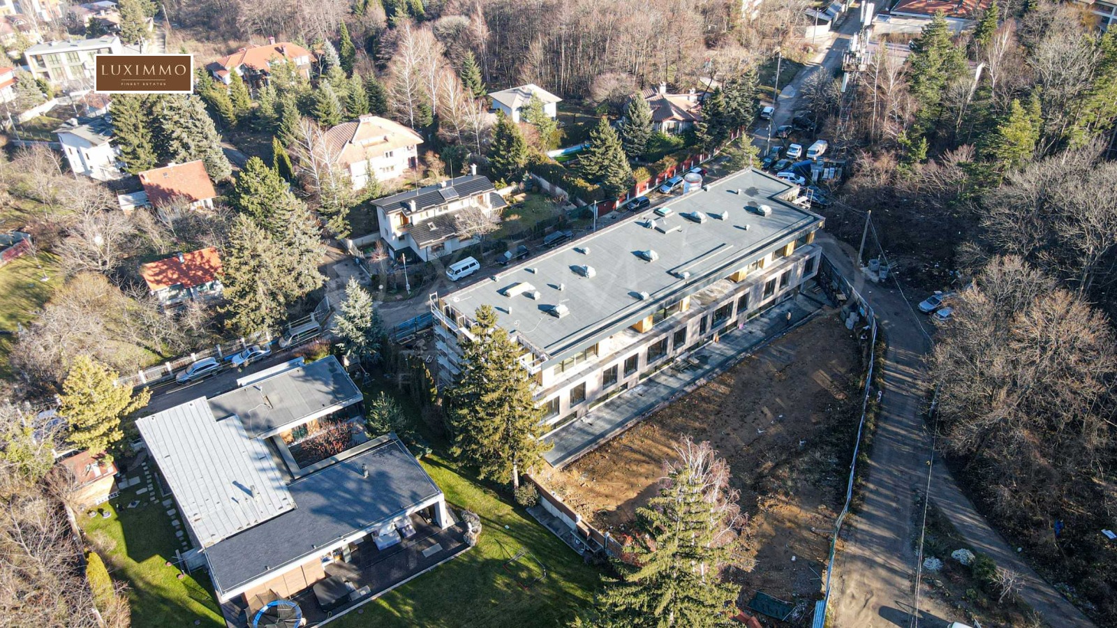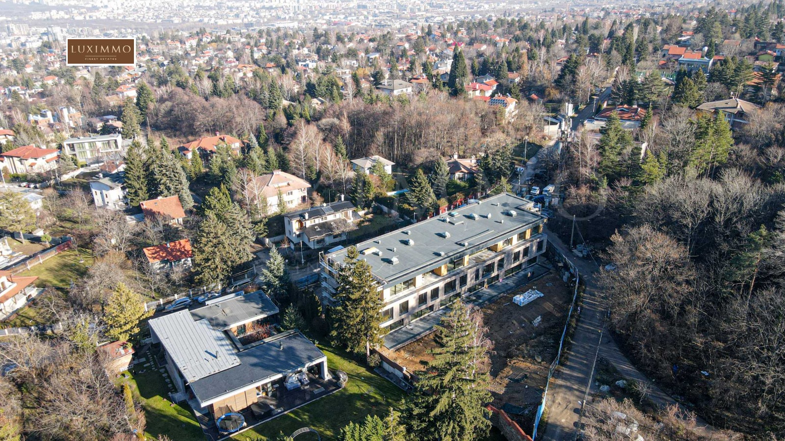 Представяме къща в оригинален и премиерен за столицата затворен комплекс. Съчетанието от екологично чиста, изключително живописна локация в подножието на планината, на едно от най-престижните места в кв. 'Драгалевци' - ул. 'Лешникова гора' с иновативна жилищна концепция 'къща в къща' го прави единствен по рода си, проект с отличителна визия в София.