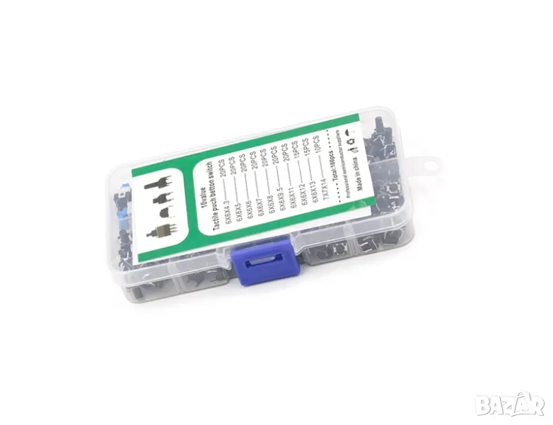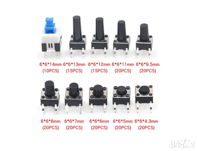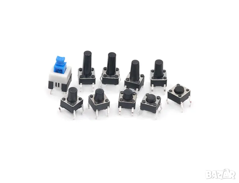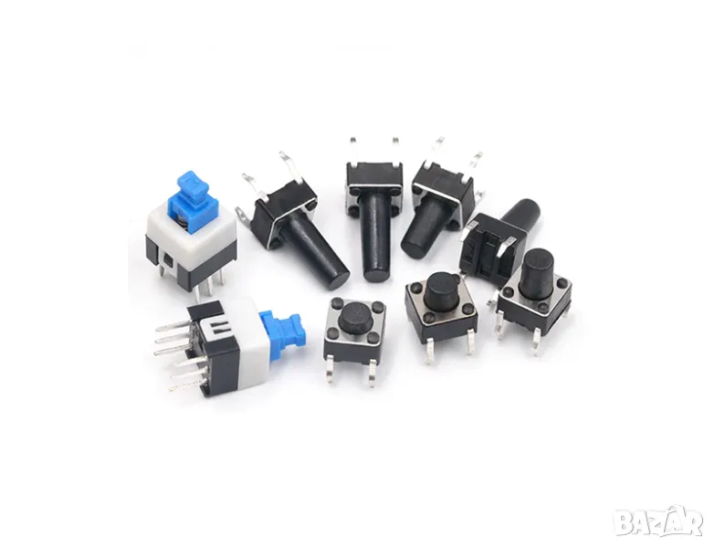 Този набор съдържа разнообразие от малки тактилни бутони (tactile push buttons), които са основни компоненти в съвременната електроника. Те се характеризират с малки размери, тактилно щракване при натискане и са идеални за монтаж на печатни платки (PCB). Наборът е незаменим за всеки, който се занимава с електроника – от начинаещ до опитен инженер.
