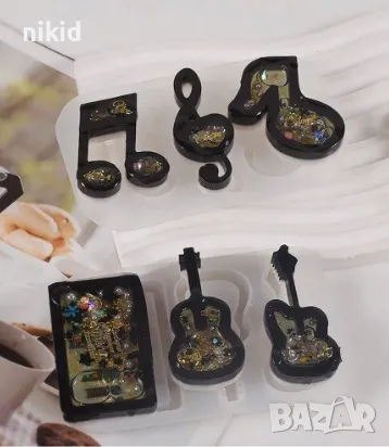 Музика нота ноти китара пиано музикаленлмузикални инструменти силиконов молд форма смола шоколад гип → Обява 47357479