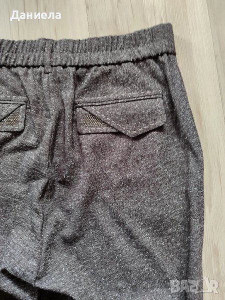 Красив панталон, пипитен с преобладаващ кафяв цвят, почти немачкаем, с декорация на джобовете, размер 46, неразличим от нов .