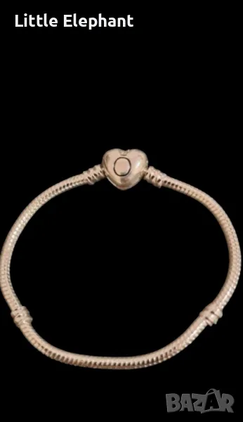 Сребърна гривна Пандора,змийска плетка със закопчалка сърце,16-17 см/нова → Обява 47358245
