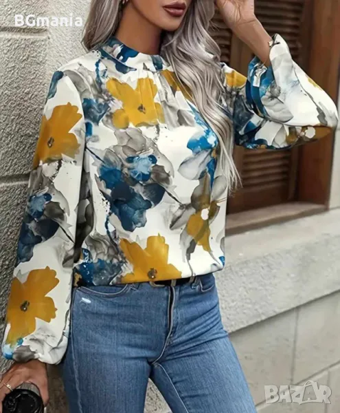 Страхотна блуза с дълъг ръкав в есенни цветове, материя полиестер