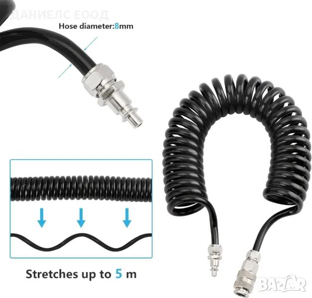 Маркучът и пистолетът са снабдени с бързи връзки.
