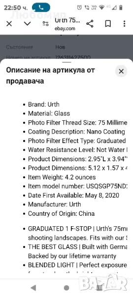 Urth 75 x 100 mm мек градуиран ND2 (1 стоп) филтър (Plus+)